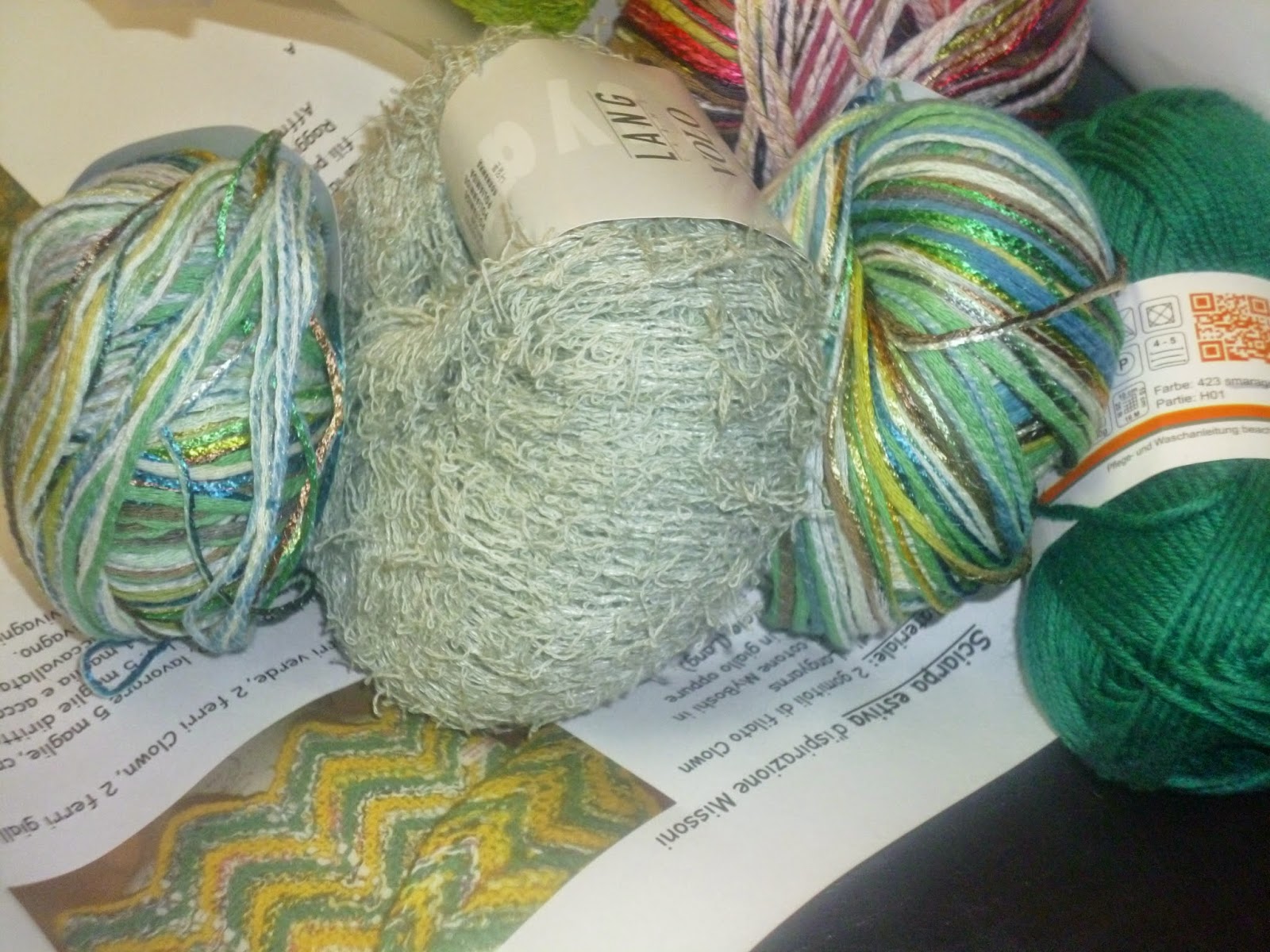 Ora mi sto divertendo a preparare sacchetti con possibili combinazioni di colori e filati.